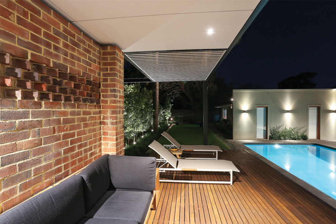 The owners of this Perth Home dreamed of a secluded alfresco space where they and their family could retreat from the house and relax. With two teenagers living at home, the design needed to be able to cater for social gatherings of various scales and age groups. The clients also wanted to maintain the character of the existing architecture, while introducing new elements and material to bring a contemporary aesthetic.